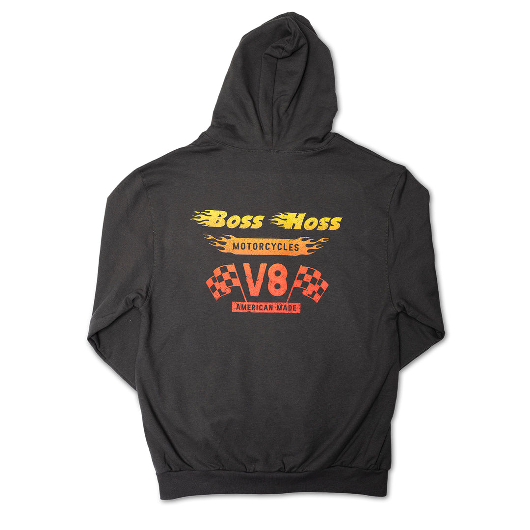 Gray Checkered Flag Flaming Finish Zipper Sweatshirt Hoodie