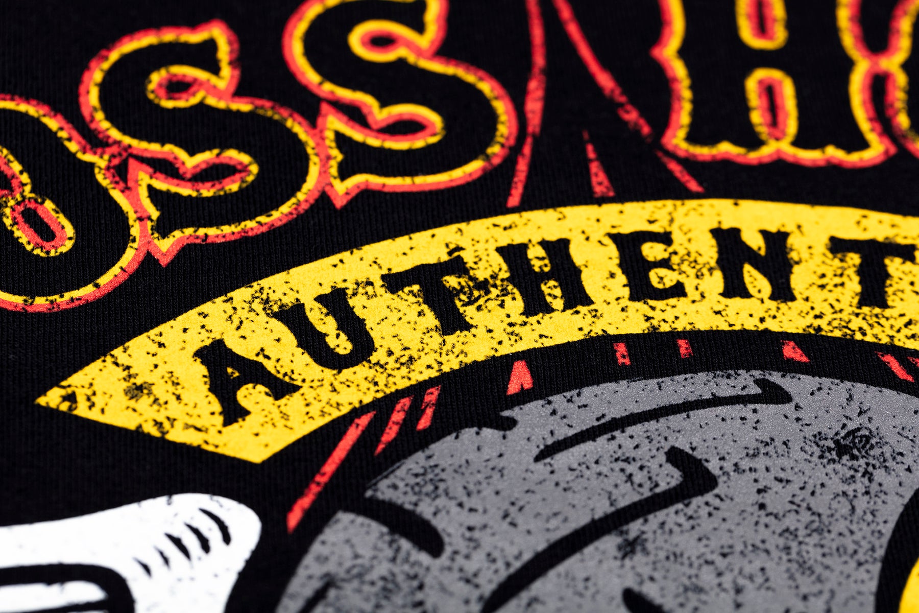 Full black 100% cotton long sleeve tee. Breathable fabric with crew neckline. Authentic American V8 winged tire design on the full back with a small design on the breast in the front.
