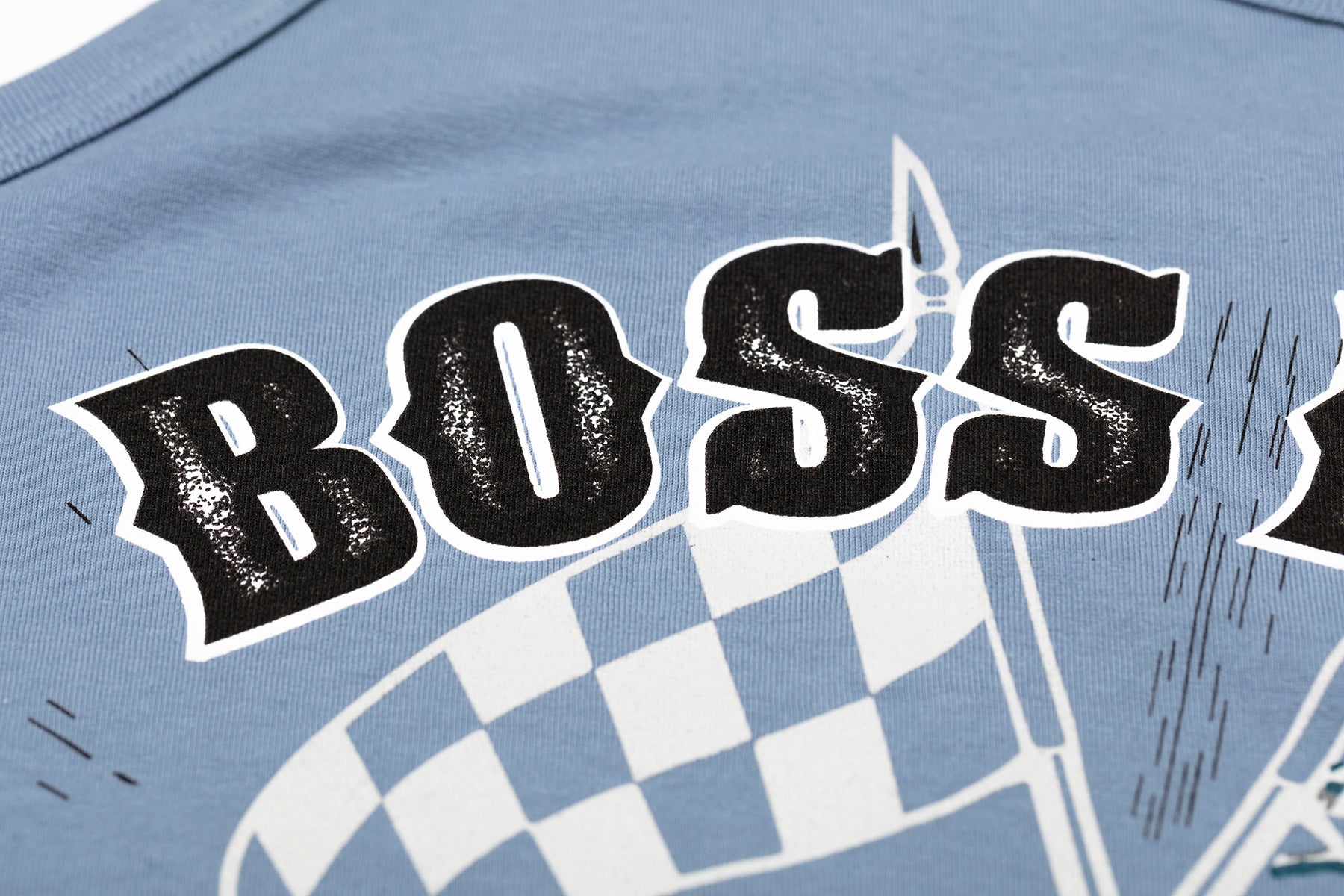 Bold Boss Hoss Genuine V8 Motorcycles screen printed tank top featuring a large V8 bike and checkered flags. Comes in both red and light blue vintage washed and dyed for a retro look and feel. Ribbed set-in collar and 100% cotton.