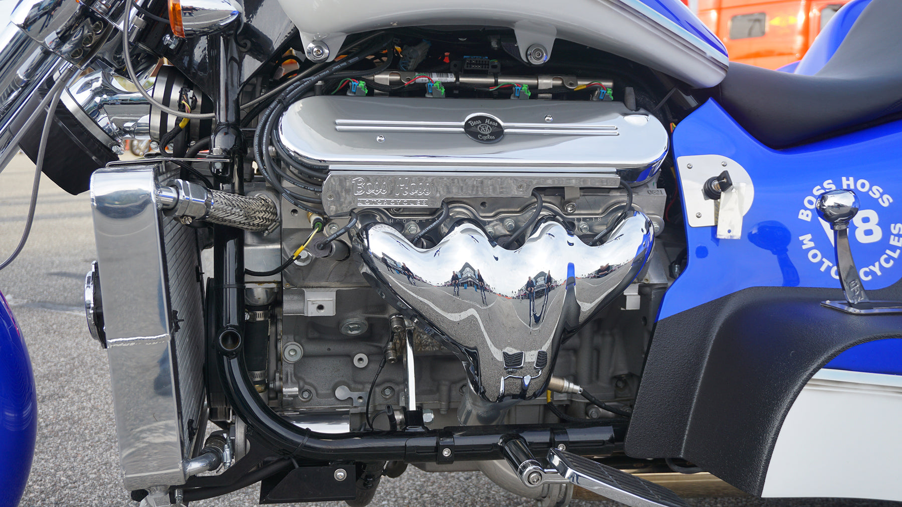 Boss Hoss Cycles, Inc. was established in 1990 when Monte Warne, the founder of Boss Hoss Cycles, Inc., created his first Chevy V-8 powered motorcycle in his 5000 square foot shop in Dyersburg, TN. Monte, a commercial aircraft pilot and degreed Aviation Airframe and Power plant technician, was the first to design a V-8 powered motorcycle that has a traditional cruiser motorcycle style, look and feel. This was accomplished by his unique approach to the motorcycles single speed (one gear) transmission design. The right angle drive transmission allows the length of the bike to be kept to a minimum and the engine-mounting inline with the frame made for a well-balanced design that is unequaled by any other V-8 powered motorcycles.