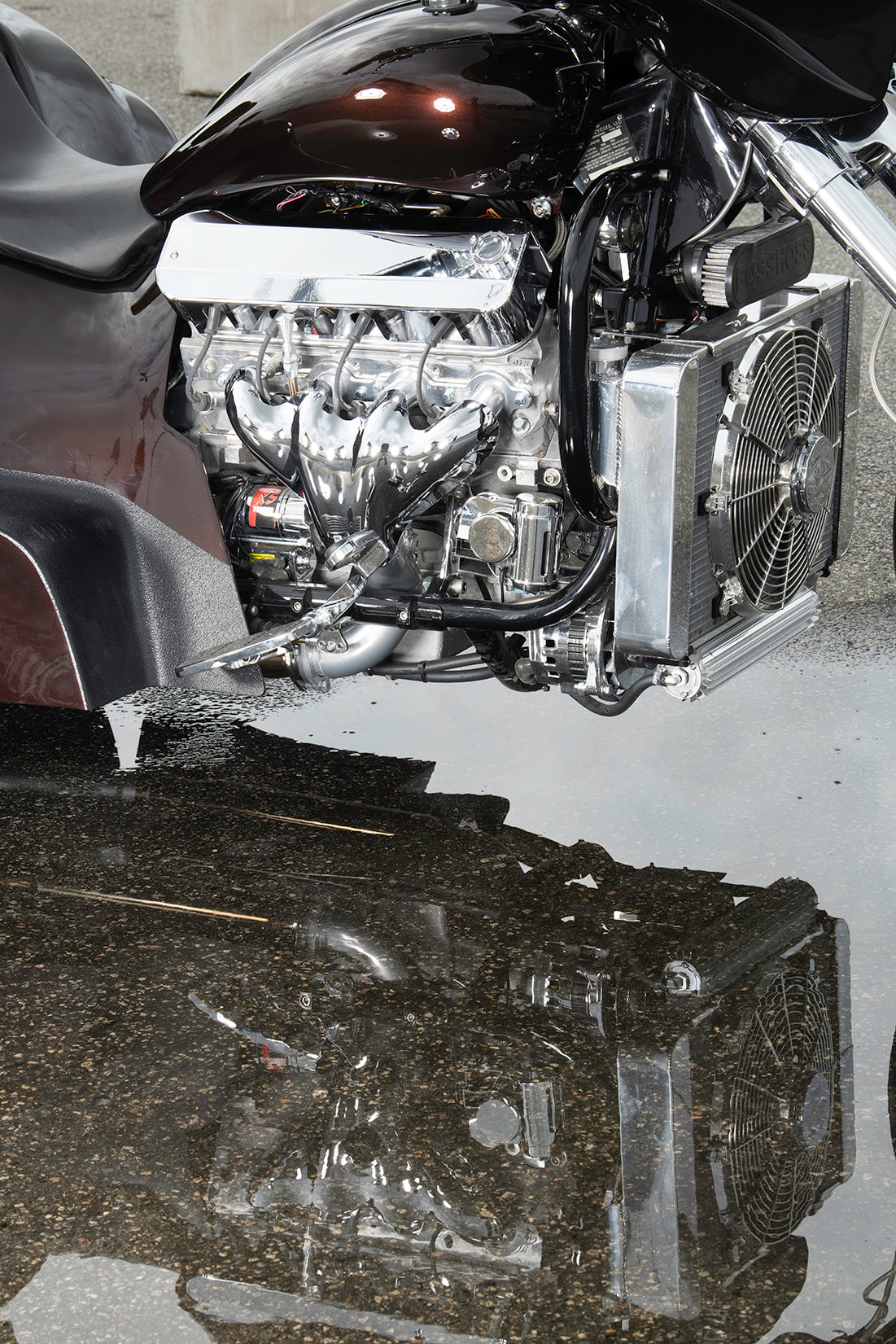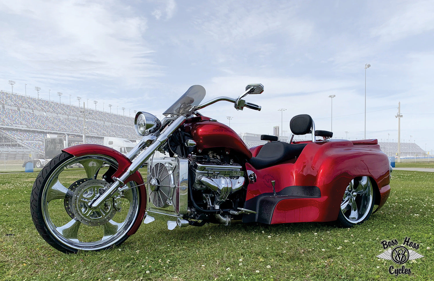 Boss Hoss Cycles, Inc. was established in 1990 when Monte Warne, the founder of Boss Hoss Cycles, Inc., created his first Chevy V-8 powered motorcycle in his 5000 square foot shop in Dyersburg, TN. Monte, a commercial aircraft pilot and degreed Aviation Airframe and Power plant technician, was the first to design a V-8 powered motorcycle that has a traditional cruiser motorcycle style, look and feel. This was accomplished by his unique approach to the motorcycles single speed (one gear) transmission design. The right angle drive transmission allows the length of the bike to be kept to a minimum and the engine-mounting inline with the frame made for a well-balanced design that is unequaled by any other V-8 powered motorcycles.